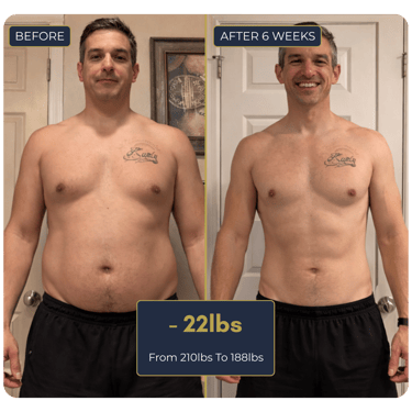 Average client loses 14–22 lbs in 6 weeks following the system.